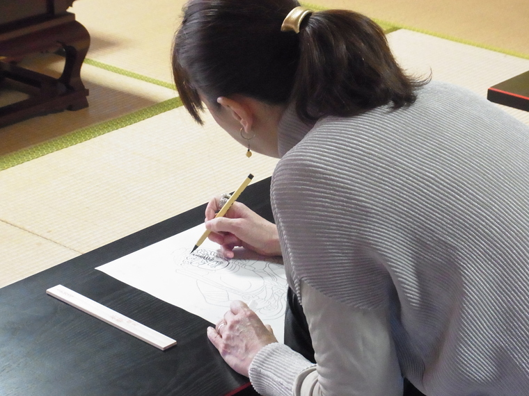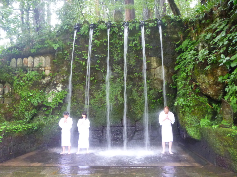 古くから人々の祈りの場、修行の場となってきた日石寺では今、六本滝での白装束に身を包んでの滝行体験、静かに仏と向き合い不動明王像を描き写す写仏体験など、様々な修行を体験することができます。また、修行体験と門前街旅館でのお食事がセットになったプランも用意されていて、年齢性別国籍を問わず、人気があります。
