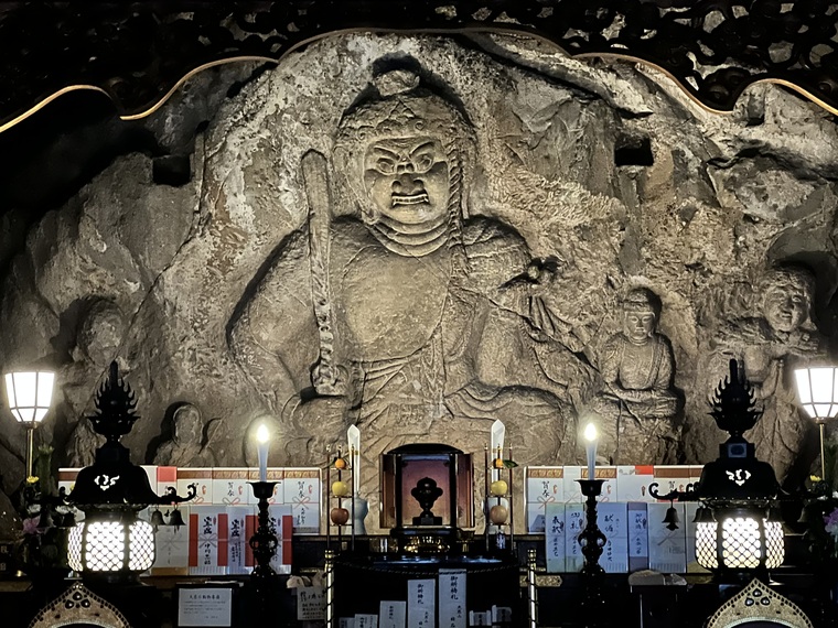 大岩山日石寺は、725年に行基が開いたのが始まりと伝わる真言密宗大本山。戦国時代の兵火で一時衰退するも、江戸時代になって加賀前田家の子宝成就の祈願所となり、再び隆盛しました。行基が自ら彫ったと伝わる磨崖仏は、国の「史跡」と「重要文化財」に指定。特に3mを超える不動明王像は、大きさ・美しさ・保存状態の良さから全国屈指の磨崖仏とされ、多くの信者・参拝者を集めています。他にも、江戸時代に造られた高さ2mを超える木造の延命地蔵、富山県で唯一江戸時代に造られた木造の三重塔、眼病に効くという古い伝承を持ち、とやまの名水にも指定されている霊水「藤水」など、見どころが満載です。