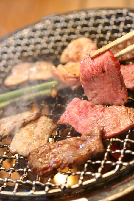 ◆七輪で焼く肉が特徴です。炭火で焼く肉は脂が下に落ちるため、ジューシーでヘルシーな上、遠赤効果で美味しさがアップします。肉は濃厚な味わいで柔らかい国産黒毛和牛を使用。果物や野菜を煮込んだフルーティーなタレも人気です。デザートが豊富で平日昼にもランチがあるので、男性はもちろん、女性にもおすすめです。