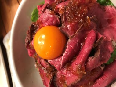 | メニュー | ・肉の宝石箱丼 1,480円 ・ビビンバ 880円 ・ローストビーフ丼 980円 ・カルビセット 3,300円 ・ファミリーセット 4,300円 |