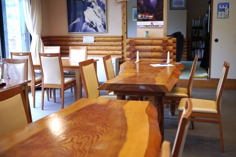 ◆剱岳登山の基地として知られている馬場島荘は、レストラン・宿泊部屋・乾燥室・コインランドリーなどの設備が充実しています。 風呂は大きく、日帰りではシャワーのみの利用となりますが、宿泊の方はゆったりとした浴槽で大自然の四季を望みながら入浴できます。レストランは、手打ちそば・季節限定の地取りの山菜の天ぷらが絶品で、これをお目当てに再訪される方も多くいらっしゃいます。