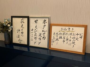 おすすめメニュー ・イカの一夜干し、ピザ、牛スジ煮、紅鮭他 |