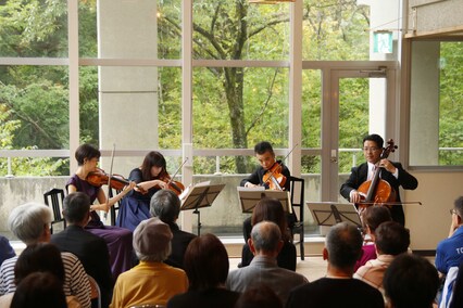 10月19日(日)、馬場島家族の森中央管理センターにおいて「馬場島コンサート秋の弦楽四重奏」が開催され、約60人が四重奏のハーモニーを堪能しました。
