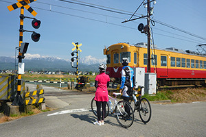 映画『RAILWAYS 愛を伝えられない大人たちへ』(2011年)で、主人公の浦島徹(三浦友和)が運転する電車を、娘の麻衣(小池栄子)が見送るシーン等を撮影しました。天気が良い日には剱岳を中心とした立山連峰を一望できるおすすめビューポイントです。