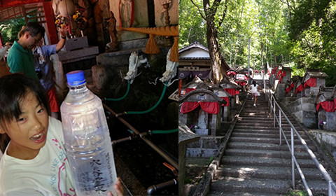 古くから修行を積む霊場として知られ、「行者穴」と呼ばれる洞窟の奥から豊富に湧き出る天然水の恩恵は、一部の修行僧らだけに許されていました。しかし、昭和32年にこの地で修業を行った岡本弘真という尼僧が「この穴の水は、病に苦しむ人に飲ませてほしい。」と遺言を残したことから、広く一般に公開され、現在に至ります。地元のみならず全国から愛好者がこの水を求めて足を運びます。