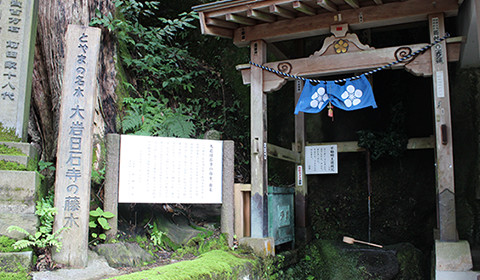 不動明王の厳石を廻り出るこの霊水は、古来より眼病に霊験ありと人々に伝えられてきました。目が見えなくなった越後のお百姓さんがこの霊水のお陰で見えるようになったという江戸時代の昔話が伝わっています。
