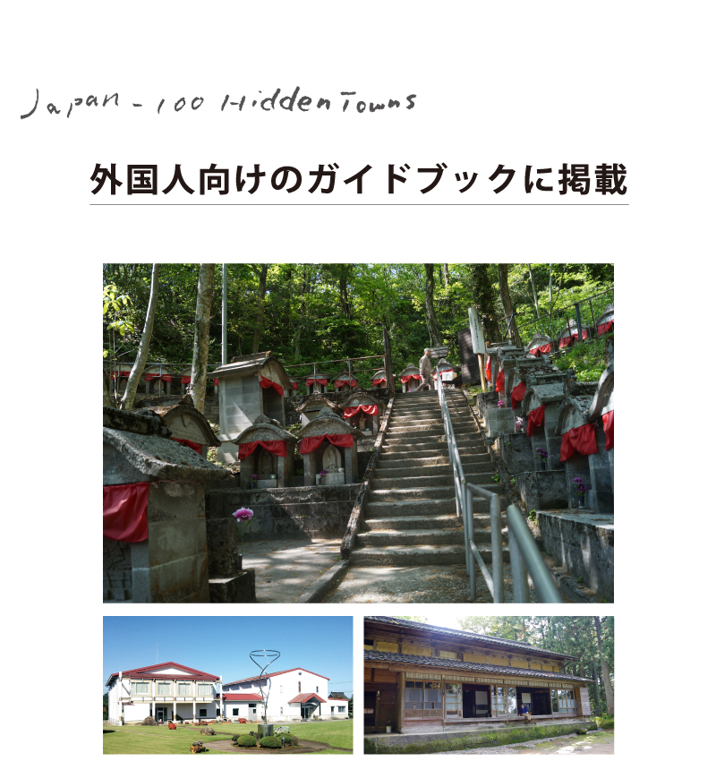 2018年に発行された「JAPAN - 100 Hidden Towns」というガイドブックをご存知ですか?この本は、訪日経験・日本に対しての知識もある外国人観光客に向けて東京・大阪・京都といった主要な観光地(通称ゴールデンルート)以外の「一味違う日本」を紹介したものです。外国人調査員が実際に現地に赴き、47都道府県から100の町が選定され、富山県からは上市町と氷見市の2箇所のみが選出されています。剱岳をはじめ、大岩山日石寺、眼目山立山寺、穴の谷霊水、おおかみこどもの花の家、西田美術館などが紹介されています。ここに紹介されているスポットをあらためて見つめ直してみると、歴史・自然・文化の掛け合わせという点で、確かに「一味違う日本」を感じられるスポットと言えるかもしれません。