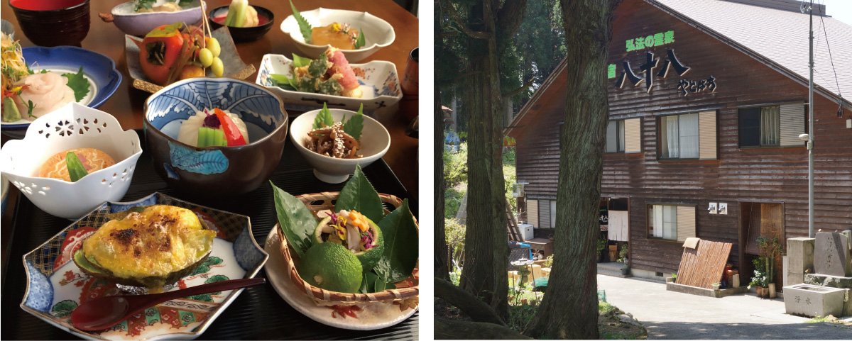 大正時代以前から続く老舗旅館。山で収穫した山菜や岩魚、繊細な仕事で表現された季節の八寸などこだわりの料理が人気の宿。
