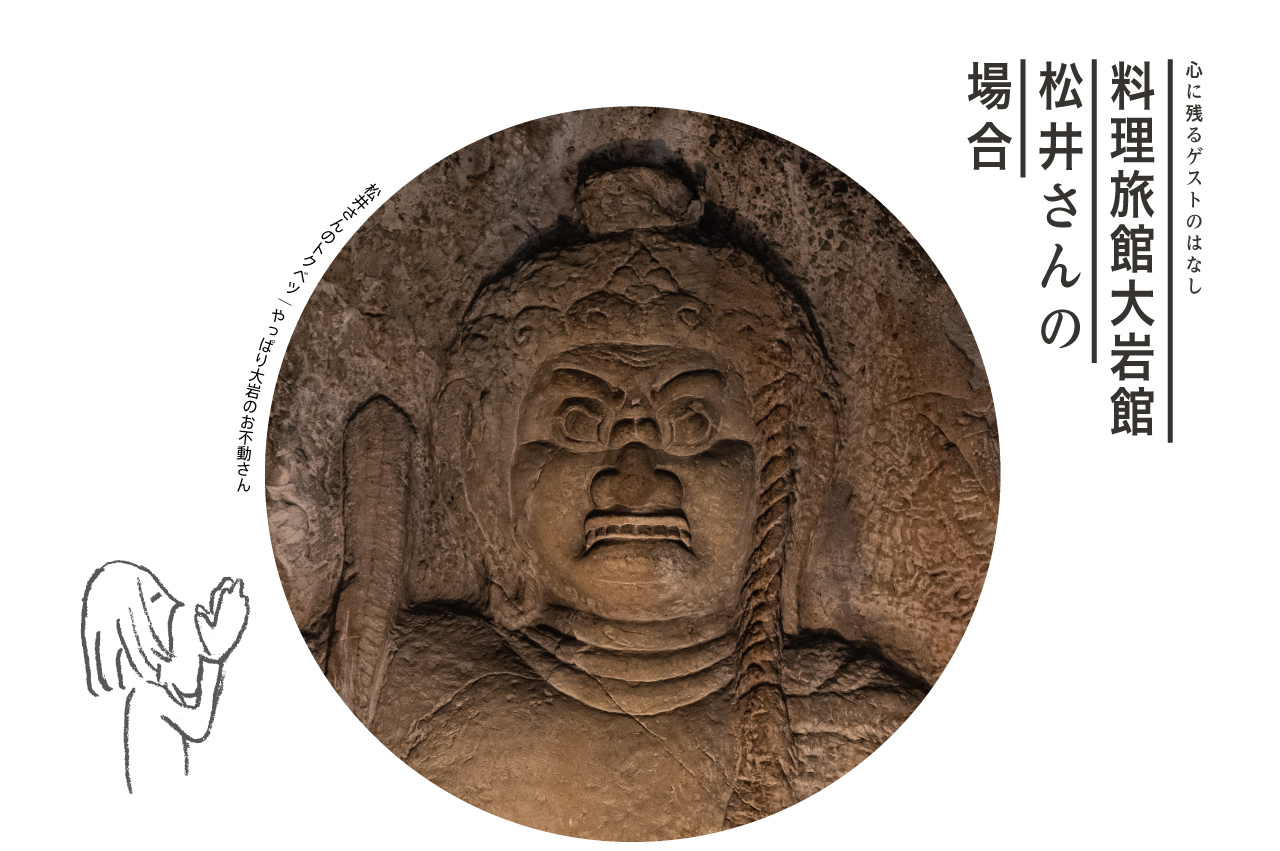 松井 昔はそうですね。今は交通の便も良くなって日帰りの方も多いし、そうめんだけ食べて帰られる方もおられるけど、やっぱり私としては、大岩に来たらお不動さんをお参りしていって欲しいですね。私自身辛い時や悩み事のあるときはいつもお不動さんのところに行くんです。ジッと見つめてると、その時その時で怒っているように見えたり優しい顔に見えたり、励まされたり、奮いたたせられたり。嫁にきて45年、たくさん救われてきました。お不動さんあってこそです。